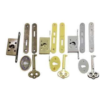 Jewellery Wooden Box Concealed Lock Full Mortise Lock Key Set Plated Metal Box Lid Plates Key Lock for Jewelry Box